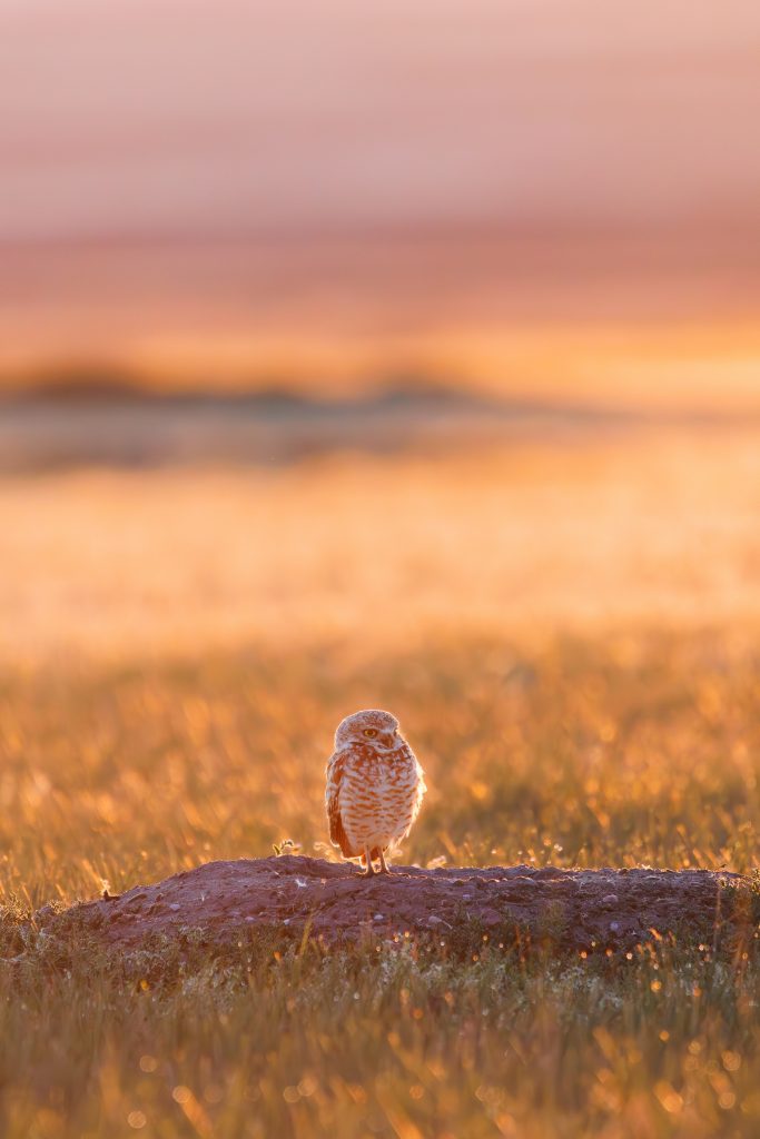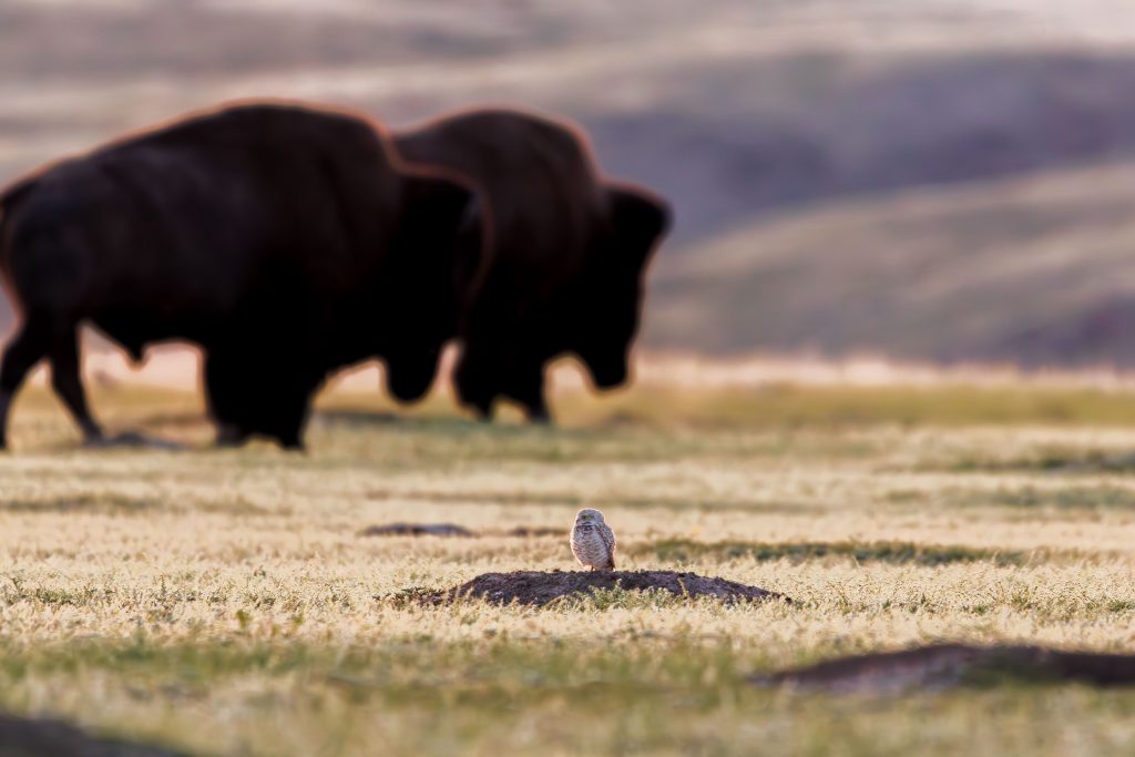 1re place – A Quiet Moment in Bloom by Simone Heinrich. During our summer hike in the Tonquin Valley, we watched a caribou peacefully grazing in a field of wildflowers. Once it had finished grazing, it lay down to rest among the flowers – a quiet, unforgettable moment. (Tonquin candidate KBA)2e place – Headbanging Buffalo living his best Elk Island life by Kristian Wolowidnyk. I caught this buffalo rocking out on the main road in Elk Island National Park. (Elk Island National Park KBA)3e place – Embraced by the Morning Glow by Caichong Chen. As the first light touched the earth, a burrowing owl stood still, bathed in the soft warmth of dawn. (Grasslands National Park and Area KBA)
