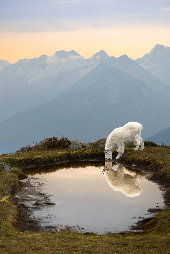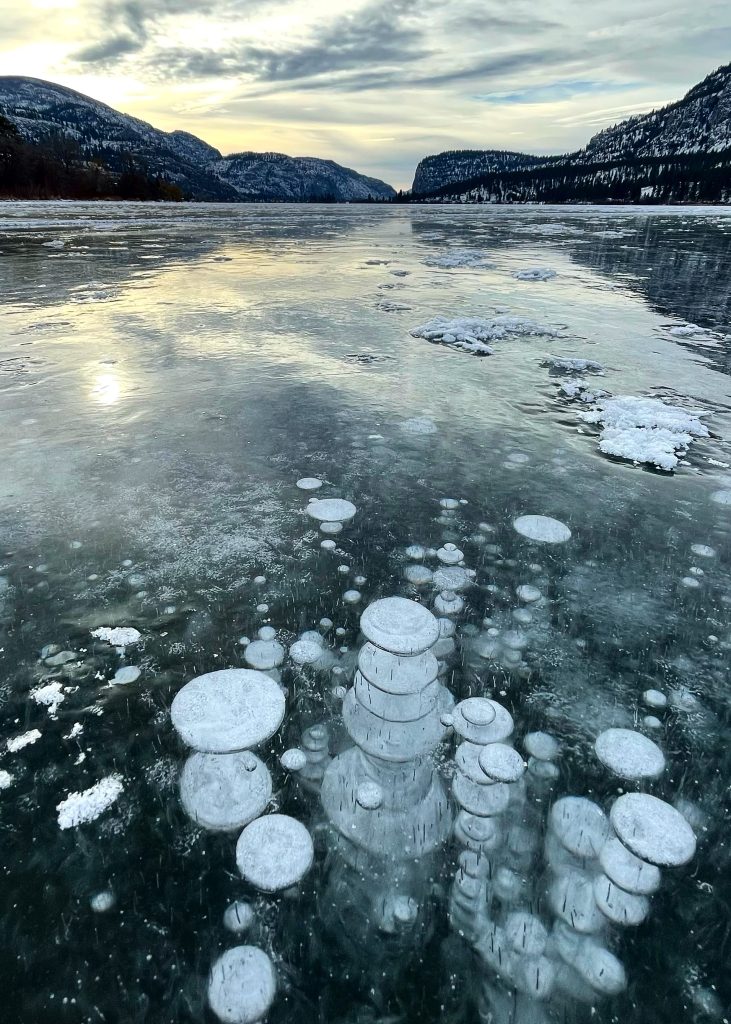1re place – Frozen Winter Wonders by A. Michael Bezener. Frozen bubbles created by rising methane from decaying lake vegetation and respiration gases from sleeping turtles and fish create fascinating multi-layered natural works of art locked within the icy surface of Vaseux Lake – evidence that even in winter the Okanagan Key Biodiversity Area harbours rich biodiversity and essential ecological processes. (South Okanagan candidate KBA)2e place – Edge of the Arctic by Shaun Antle. This image was captured out on the Arctic tundra, in District 23, Manitoba. I spotted him from the sunlight bouncing off his coat about a kilometer or 2 away. We got as close as we could and I put the drone up and kept a very safe distance away as I wanted to capture the Hudson Bay, Arctic Tundra, the sunset, the polar bear and in the background, silhouetted is the shipwreck Ithaca. (Churchill candidate KBA)3e place – When Water Paints—Mount Galwey by Sheryl R Garrison. On a calm day in Waterton Lakes National Park, a pool of water can reflect the mountains standing high above it, creating a transitory image reminiscent of a watercolor painting. (Castle-Waterton-Akamina KBA)
